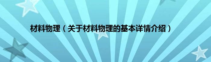 本文关于材料物理的基本详情介绍就讲解完毕,希望对大家有所帮助。