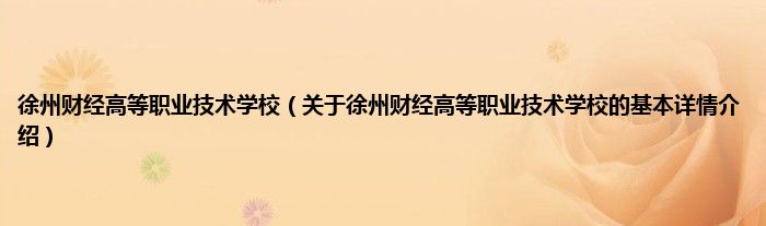 本文关于徐州财经高等职业技术学校的基本详情介绍就讲解完毕,希望对大家有所帮助。