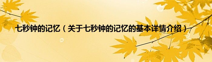 本文关于七秒钟的记忆的基本详情介绍就讲解完毕,希望对大家有所帮助。