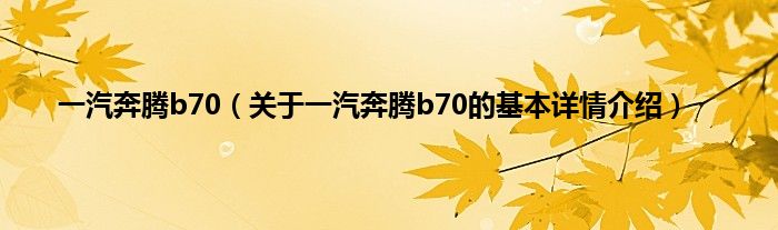 一汽奔腾b70(关于一汽奔腾b70的基本详情介绍)