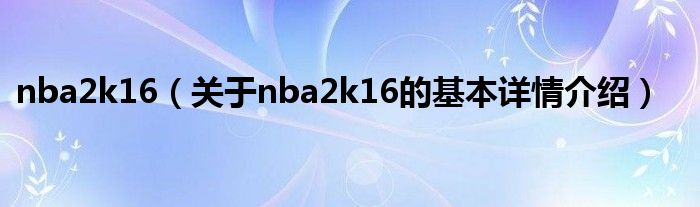本文关于nba2k16的基本详情介绍就讲解完毕,希望对大家有所帮助。