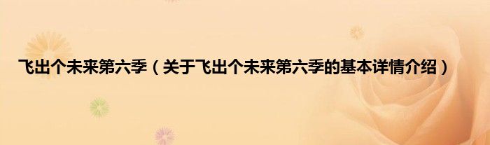 本文关于飞出个未来第六季的基本详情介绍就讲解完毕,希望对大家有所帮助。