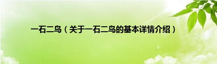 本文关于一石二鸟的基本详情介绍就讲解完毕,希望对大家有所帮助。