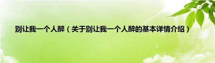 本文关于别让我一个人醉的基本详情介绍就讲解完毕,希望对大家有所帮助。