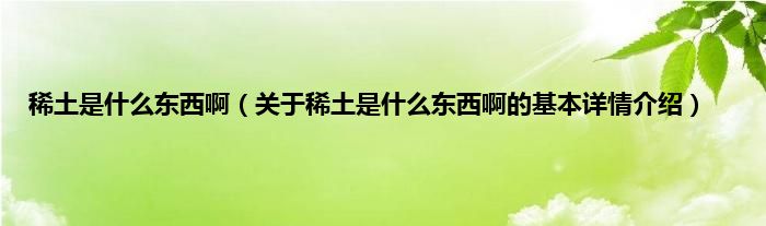 本文关于稀土是什么东西啊的基本详情介绍就讲解完毕,希望对大家有所帮助。