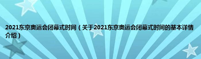 本文关于2021东京奥运会闭幕式时间的基本详情介绍就讲解完毕,希望对大家有所帮助。