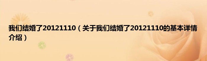 本文关于我们结婚了20121110的基本详情介绍就讲解完毕,希望对大家有所帮助。