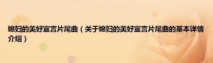 本文关于媳妇的美好宣言片尾曲的基本详情介绍就讲解完毕,希望对大家有所帮助。