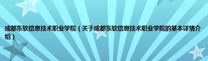 本文关于成都东软信息技术职业学院的基本详情介绍就讲解完毕,希望对大家有所帮助。