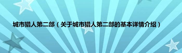 本文关于城市猎人第二部的基本详情介绍就讲解完毕,希望对大家有所帮助。