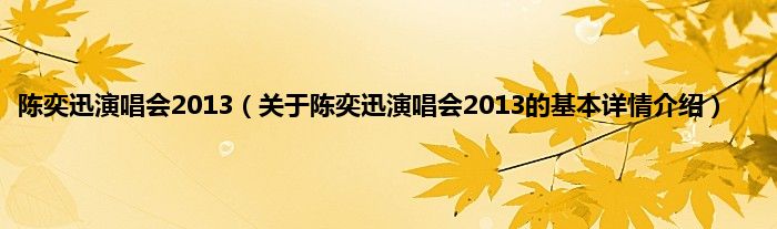 本文关于陈奕迅演唱会2013的基本详情介绍就讲解完毕,希望对大家有所帮助。