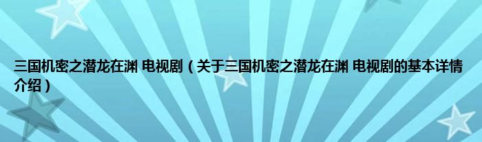 本文关于三国机密之潜龙在渊 电视剧的基本详情介绍就讲解完毕,希望对大家有所帮助。