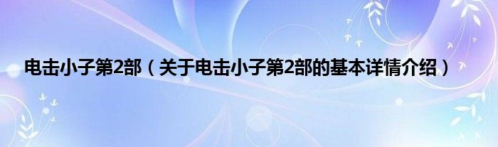 本文关于电击小子第2部的基本详情介绍就讲解完毕,希望对大家有所帮助。