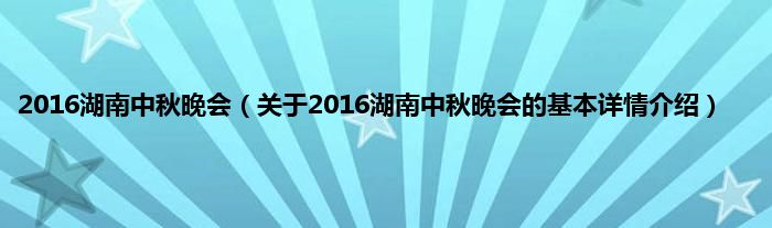 本文关于2016湖南中秋晚会的基本详情介绍就讲解完毕,希望对大家有所帮助。