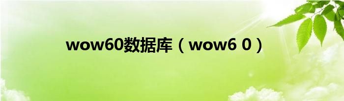 wow60数据库(wow6 0)