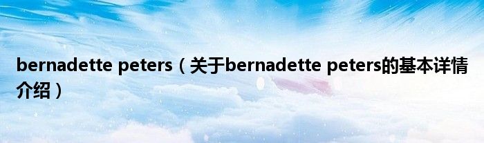 本文关于bernadette peters的基本详情介绍就讲解完毕,希望对大家有所帮助。