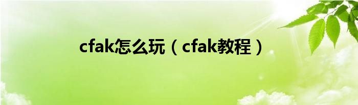 以上就是【cfak怎么玩,cfak教程】相关内容。