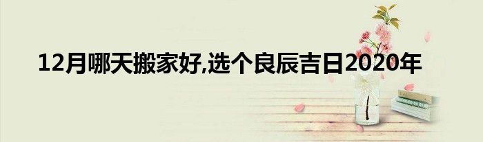 以上就是【12月哪天搬家好,选个良辰吉日2020年】相关内容。