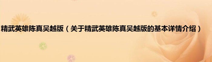本文关于精武英雄陈真吴越版的基本详情介绍就讲解完毕,希望对大家有所帮助。