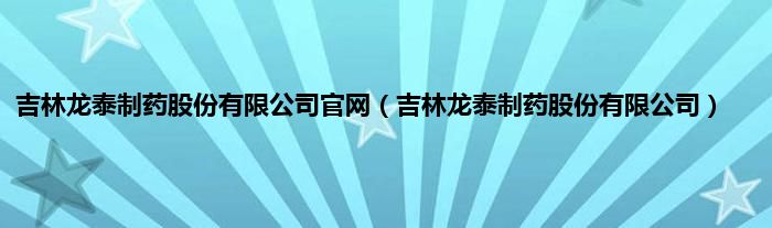 以上就是【吉林龙泰制药股份有限公司官网,吉林龙泰制药股份有限公司】相关内容。