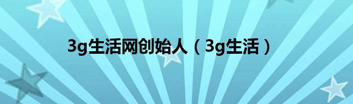 大家好,小问来为大家解答以上问题。3g生活网创始人,3g生活这个很多人还不知道,现在让我们一起来看看吧!