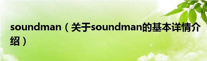 本文关于soundman的基本详情介绍就讲解完毕,希望对大家有所帮助。