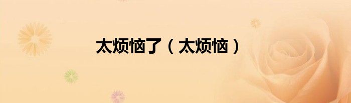 以上就是【太烦恼了,太烦恼】相关内容。
