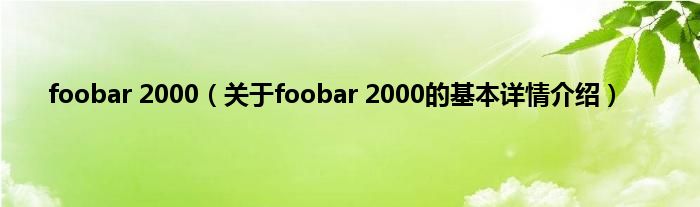 本文关于foobar 2000的基本详情介绍就讲解完毕,希望对大家有所帮助。