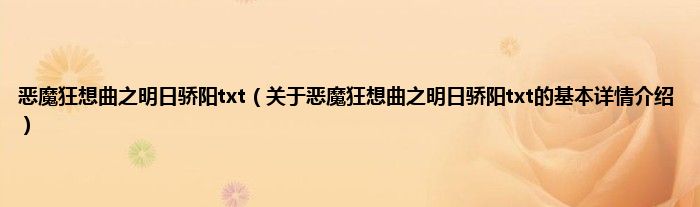本文关于恶魔狂想曲之明日骄阳txt的基本详情介绍就讲解完毕,希望对大家有所帮助。