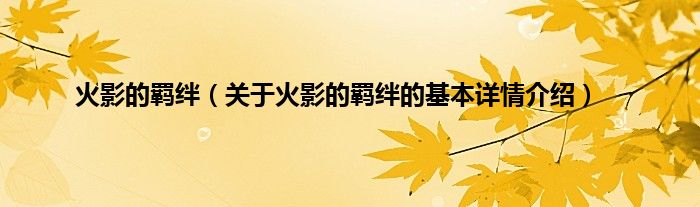 本文关于火影的羁绊的基本详情介绍就讲解完毕,希望对大家有所帮助。