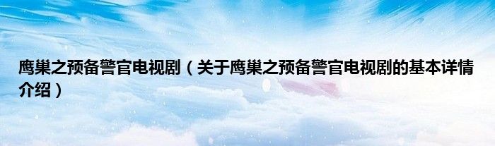 本文关于鹰巢之预备警官电视剧的基本详情介绍就讲解完毕,希望对大家有所帮助。