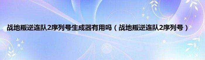 战地叛逆连队2序列号生成器有用吗(战地叛逆连队2序列号)