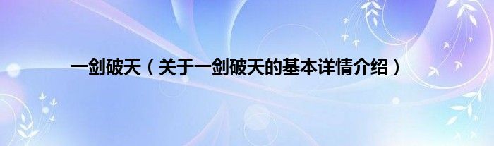 本文关于一剑破天的基本详情介绍就讲解完毕,希望对大家有所帮助。