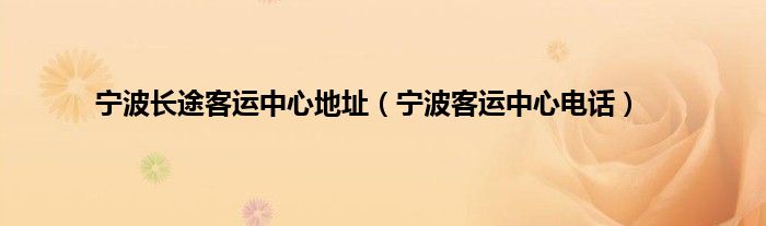 以上就是【宁波长途客运中心地址,宁波客运中心电话】相关内容。