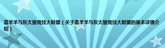 本文关于喜羊羊与灰太狼竞技大联盟的基本详情介绍就讲解完毕,希望对大家有所帮助。