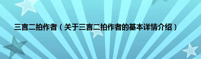 本文关于三言二拍作者的基本详情介绍就讲解完毕,希望对大家有所帮助。