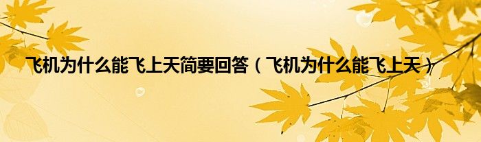 以上就是【飞机为什么能飞上天简要回答,飞机为什么能飞上天】相关内容。