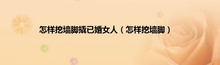 大家好,小问来为大家解答以上问题。怎样挖墙脚撬已婚女人,怎样挖墙脚这个很多人还不知道,现在让我们一起来看看吧!