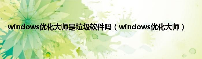 大家好,小问来为大家解答以上问题。windows优化大师是垃圾软件吗,windows优化大师这个很多人还不知道,现在让我们一起来看看吧!