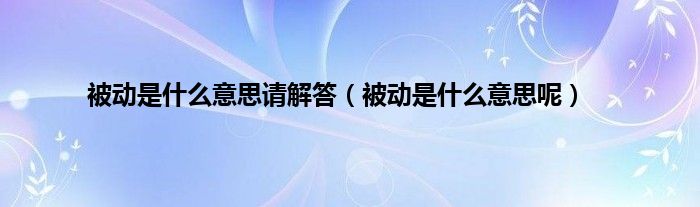 以上就是【被动是什么意思请解答,被动是什么意思呢】相关内容。