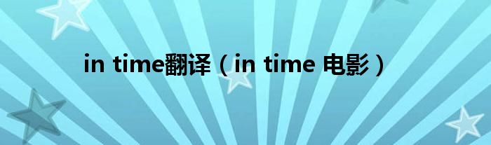 大家好,小问来为大家解答以上问题。in time翻译,in time 电影这个很多人还不知道,现在让我们一起来看看吧!