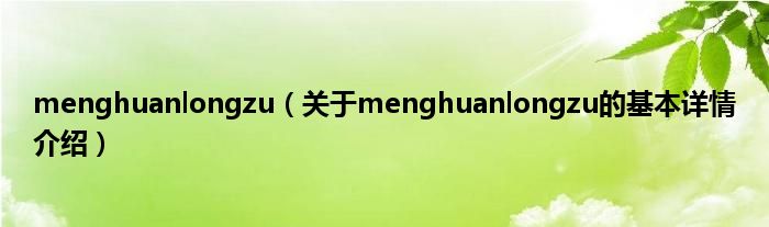 menghuanlongzu(关于menghuanlongzu的基本详情介绍)
