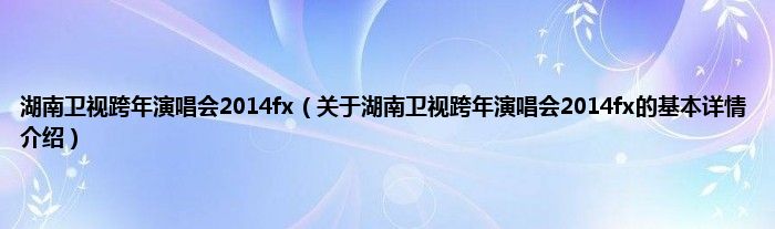 本文关于湖南卫视跨年演唱会2014fx的基本详情介绍就讲解完毕,希望对大家有所帮助。