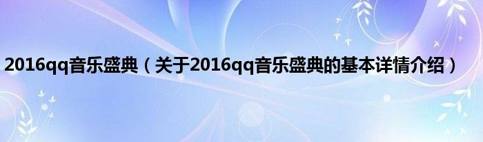 本文关于2016qq音乐盛典的基本详情介绍就讲解完毕,希望对大家有所帮助。