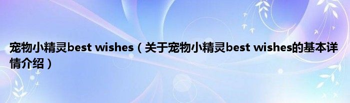 本文关于宠物小精灵best wishes的基本详情介绍就讲解完毕,希望对大家有所帮助。