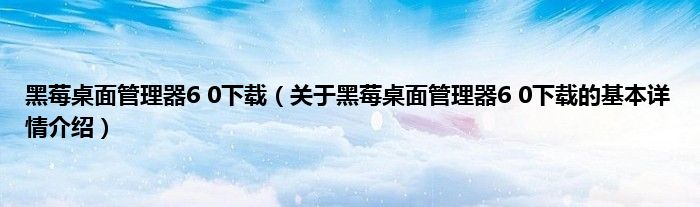 本文关于黑莓桌面管理器6 0下载的基本详情介绍就讲解完毕,希望对大家有所帮助。