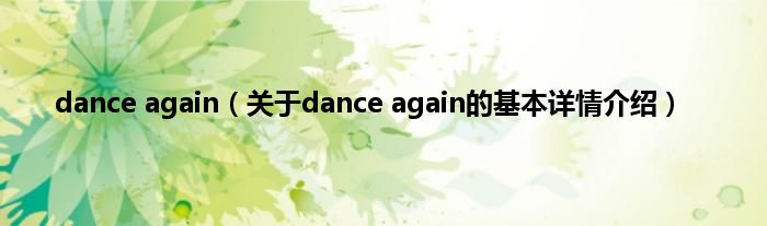本文关于dance again的基本详情介绍就讲解完毕,希望对大家有所帮助。