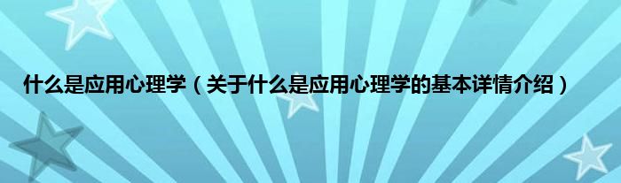 本文关于什么是应用心理学的基本详情介绍就讲解完毕,希望对大家有所帮助。