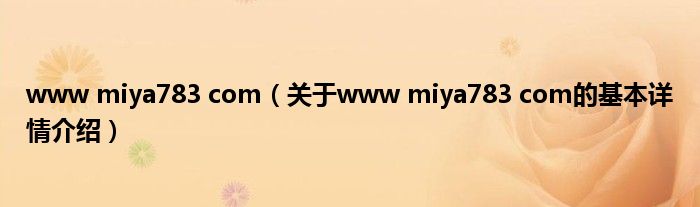 本文关于www miya783 com的基本详情介绍就讲解完毕,希望对大家有所帮助。