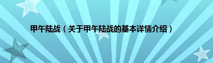 甲午陆战(关于甲午陆战的基本详情介绍)